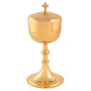 O Cibório vem do latim cibus, alimento. Objeto abençoado para distribuir a hóstia. Geralmente fabricado em metal, pode ou não possuir base/pé, e possui tampa.