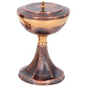 O Cibório vem do latim cibus, alimento. Objeto abençoado para distribuir a hóstia. Geralmente fabricado em metal, pode ou não possuir base/pé, e possui tampa.