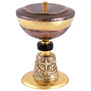 O Cibório vem do latim cibus, alimento. Objeto abençoado para distribuir a hóstia. Geralmente fabricado em metal, pode ou não possuir base/pé, e possui tampa.