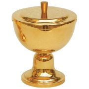 O Cibório vem do latim cibus, alimento. Objeto abençoado para distribuir a hóstia. Geralmente fabricado em metal, pode ou não possuir base/pé, e possui tampa.