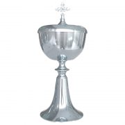 O Cibório vem do latim cibus, alimento. Objeto abençoado para distribuir a hóstia. Geralmente fabricado em metal, pode ou não possuir base/pé, e possui tampa.