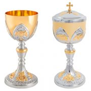 Conjunto Cálice e Cibório, no qual o cálice é um vaso sagrado que remete ao “Mandatum Novum” (nova aliança) do Senhor. Tem suas raízes na páscoa judaica.
