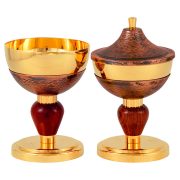 Conjunto Cálice e Cibório, no qual o cálice é um vaso sagrado que remete ao “Mandatum Novum” (nova aliança) do Senhor. Tem suas raízes na páscoa judaica.