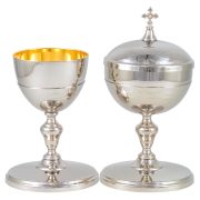 Conjunto Cálice e Cibório, no qual o cálice é um vaso sagrado que remete ao “Mandatum Novum” (nova aliança) do Senhor. Tem suas raízes na páscoa judaica.